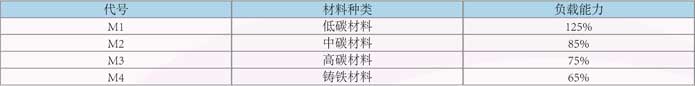 負載能力與材質(zhì)種類換算表